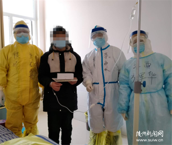 这两名医生是援随县洪山医院江西赣州医疗队队长李海林和医生贾龙睿,小奇是洪山镇杜家店村人,洪山小学六年级学生。当天,李海林等人给小奇送来了一部新的智能手机,和一些书籍、纸笔等,更送来了全体医疗队的关爱与鼓励。