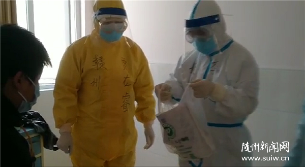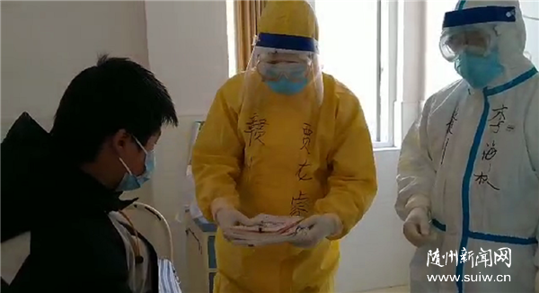 “WIFI已经帮你连好了”、“除了休息,可以听课,看看书”、“会用微信吗?不会我来帮你弄”、“但不能用手机玩游戏”、“饭吃得下吗”、“身体有任何不舒服随时跟我们说”……3月5日上午,随县洪山医院感染性疾病科隔离病区病房内,两名穿着厚重防护服的医生,对13岁的新冠肺炎患者小奇(化名)一句一句叮嘱着。