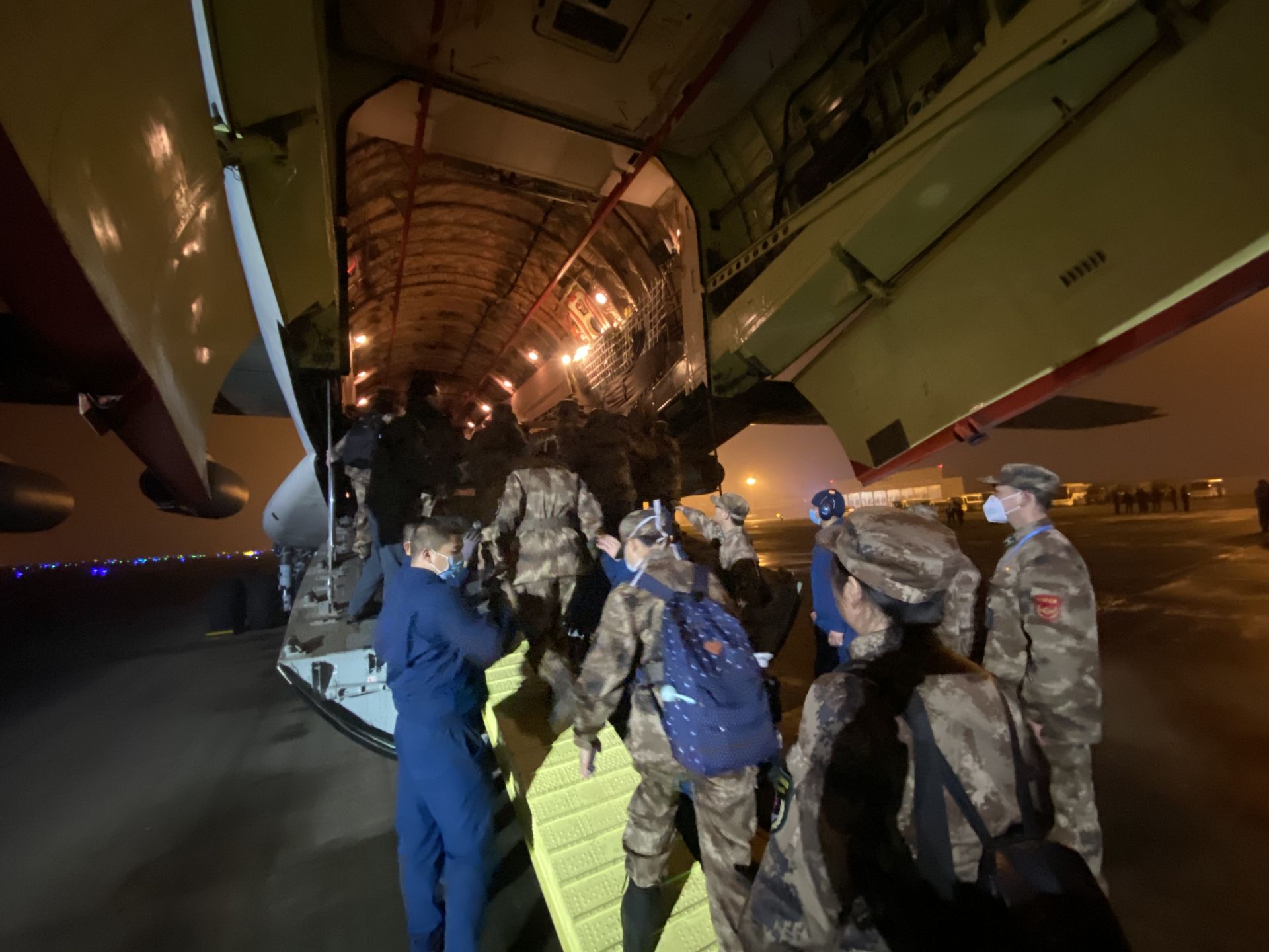 1月24日,除夕夜,重庆江北国际机场,由陆军军医大学抽调精干医务人员组建的150人医疗队连夜出发,飞赴武汉支援抗击新冠肺炎疫情。
