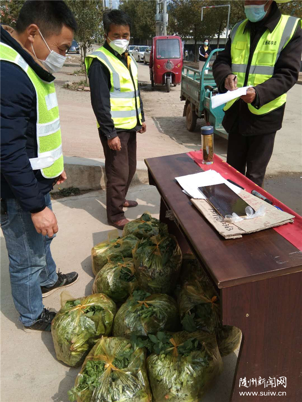 均川镇胡家台村村民多以种菜卖菜为生,是均川镇的“菜篮子”,胡家台村积极和镇内小区联系,采取直供方式,通过小区居民微信下单、线上支付,菜农根据自家蔬菜品种打包5元、10元“时令小菜包”,由代购员、志愿者将蔬菜包进行隔袋消毒后送到住户家中。
