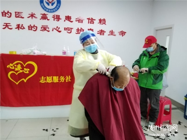 疫情发生以来,理发店都暂停营业,理发成为困扰居民的一件焦心的难事。获悉情况后,曾都区心连心志愿服务社助残抗疫突击队队长刘光全立即组织骨干志愿者包艳珍、汤秀涛、黄锦等组建起一支临时助残义剪突击队,带上理发工具,深入社区开展“邻里守望,助残义剪”便民服务活动,帮孤寡老人、残疾人等困难群众解决疫情期间的“头上”大事。