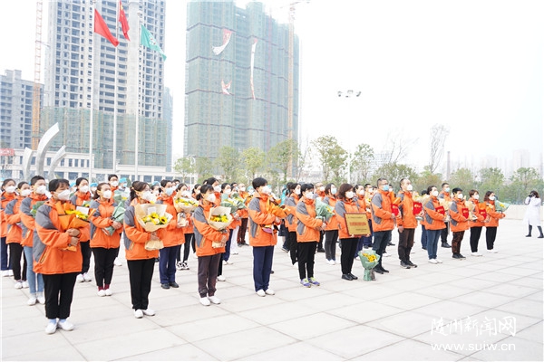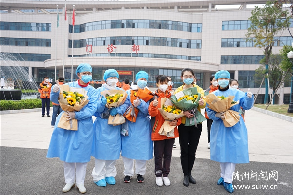 随州日报讯(全媒记者张琴)鲜花送亲人,谢谢你们,西安逆行随州的白衣战士们!3月13日上午,市委市政府在市中心医院文帝院区门诊部广场举行仪式,热烈欢送卓尔公益基金会•西安国际医学中心医院援随医疗队凯旋。近一个月时间里,医疗队与随州市中心医院(卓尔随州应急医院)医护人员并肩战“疫”,出色地完成了救治任务。