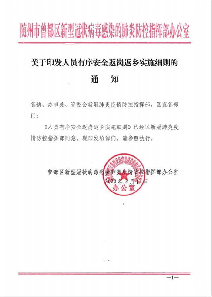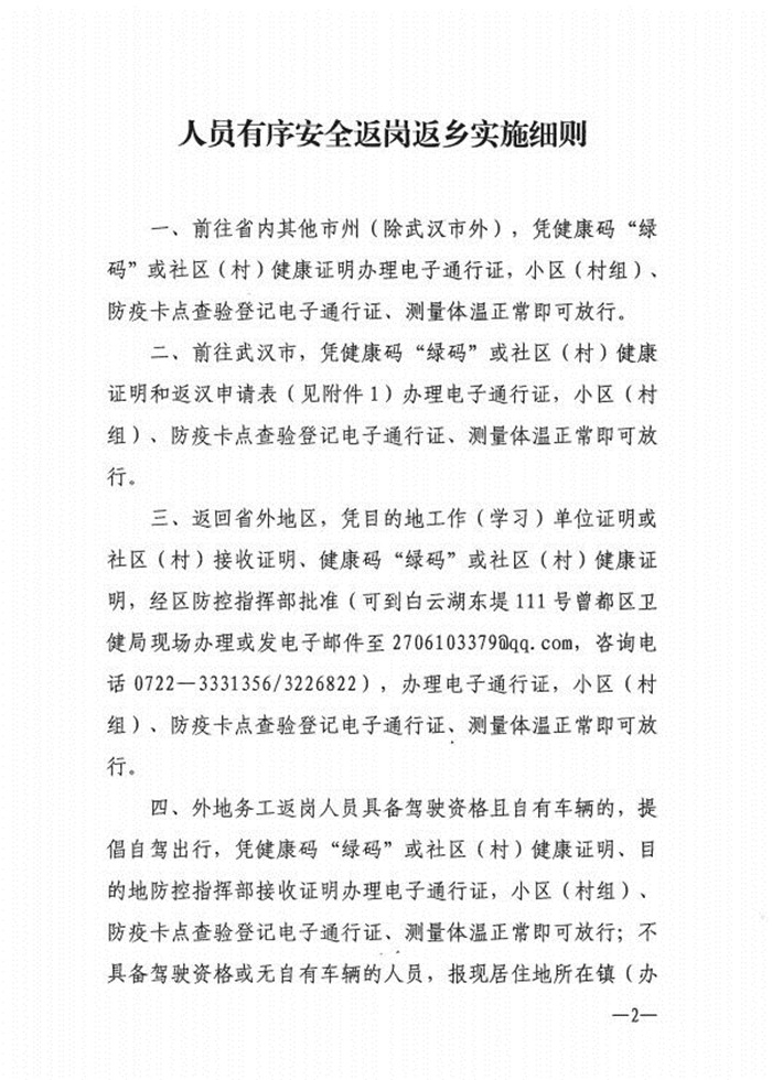 【权威发布】关于印发人员有序安全返岗返乡实施细则的通知
