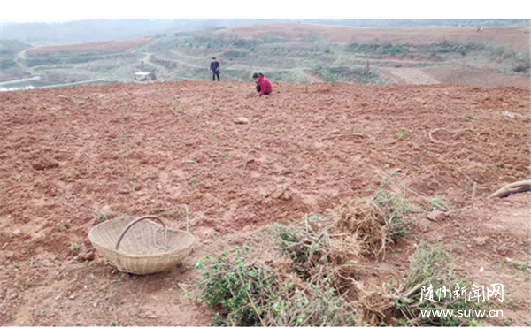 “岁寒节操固自常,厌看花柳争春忙”。3月14日早上7点,随县澴潭镇柏树湾村,金银花基地。李中芹和她的伙伴们也没有心情赏花看柳。她们早早的就来到基地,两人一组分开干活。“人误地一时,地误人一年”,农时不等人。当天,她们要抢着把这片今年新开垦的50亩地都栽上金银花苗。