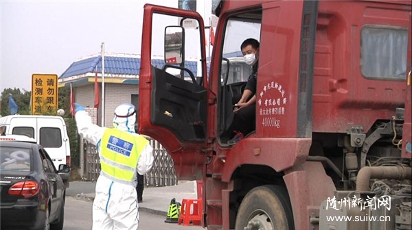 在另一边的高速出口处,随县经济开发区管委会的工作人员正在对要入随的车辆及人员进行检查,查看接收证明、“绿”码,并进行登记。