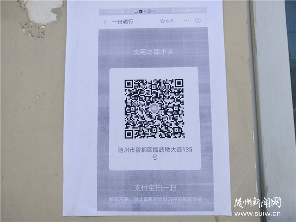 随州日报讯(全媒记者 杨仪凡)“请将健康码拿出来,也可以登录支付宝扫一下墙上的二维码,谢谢。”3月17日上午10时,曾都区南郊办事处马家榨社区文苑之都大门,社区党委委员王涛正督促每位进出人员扫码使用小区的“一码通行”。