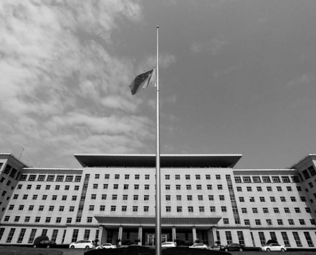 4月4日上午,随州市政府楼前广场降半旗志哀