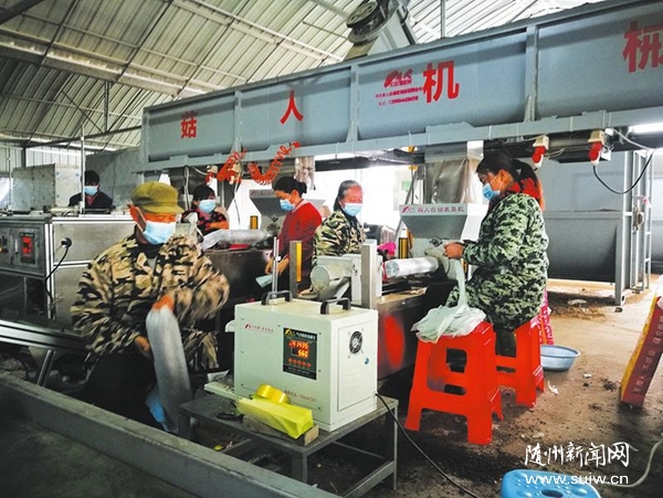 ▶连日来,随县万和镇青之村香菇专业合作社防疫生产两不误,正抓紧时间生产菌棒,平均每天可制棒12000棒。