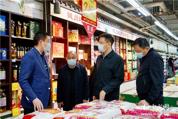 克克先后来到大润发超市、银泰新世纪购物广场,与商场负责人和销售人员深入交流,详细了解疫情影响和复工后的经营状况,仔细询问人流量和顾客消费等情况,并沿着解放路了解沿街商铺复工经营情况,随机走访部分店铺,询问经营状况,了解防控措施落实情况。“目前一天的营业额有多少”“客流量如何”“有多少员工在岗”……克克问的十分仔细,鼓励他们要树立信心,克服困难,及时转变经营理念,通过多种促销手段,有效挖掘潜在顾客,提高产品销售额。克克还来到超市随州产品专区,了解随州地产品进商超的情况。他说,要让更多的随州地产品进入商超、餐饮销售渠道,让广大市民享受到随州优质地产品,助推随州地产品销售。