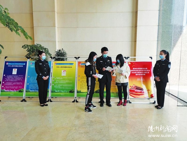 4月15日是第5个全民国家安全教育日。市公安局制作了宣传展板,组织开展国家安全法、网络安全法、核安全法、反恐怖主义法、反间谍法等法律宣传活动,发放宣传手册100余份。(随州日报通讯员洪林摄)
