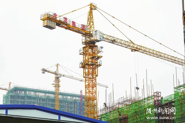 连日来,我市加快推进复工复产。图为4月17日工人正在吾悦广场建筑工地上施工。