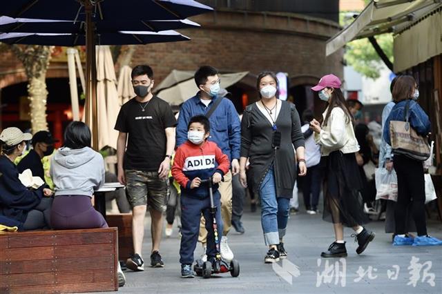 4月19日,市民在武汉天地商业街休闲购物。(湖北日报全媒记者 李溪 摄)