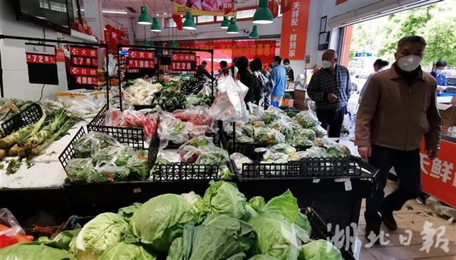 4月19日,武汉市武昌区锦绣江南小区,居民在生鲜超市购物。(湖北日报全媒记者田悦 摄)