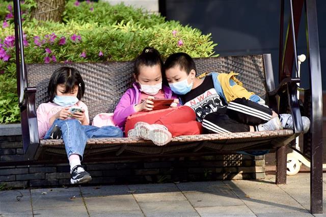 4月19日,小朋友在武汉天地商业街休闲娱乐。(湖北日报全媒记者 李溪 摄)