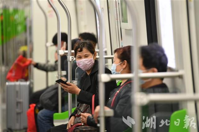4月19日,武汉地铁4号线,市民们乘坐地铁出行。(湖北日报全媒记者 魏铼 摄)