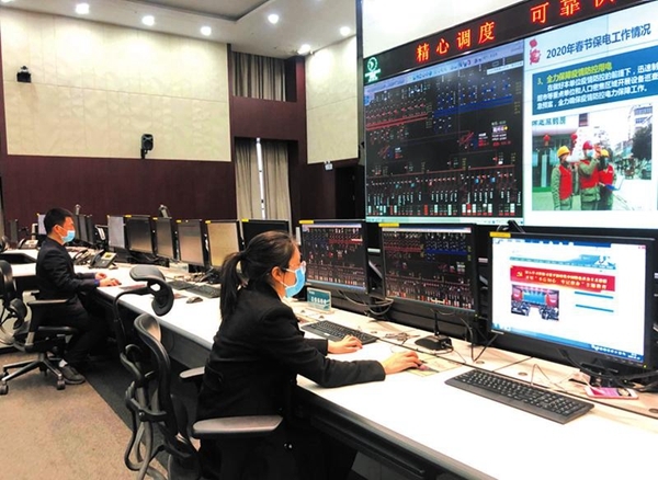 图为国网随州供电公司调控中心调度人员,全神贯注、精心调度,确保防疫期间城乡安全用电。(随州日报通讯员黎姣摄)