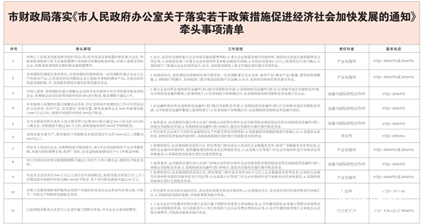 随州市财政局落实《市人民政府办公室关于落实若干政策措施促进经济社会加快发展的通知》牵头事项清单