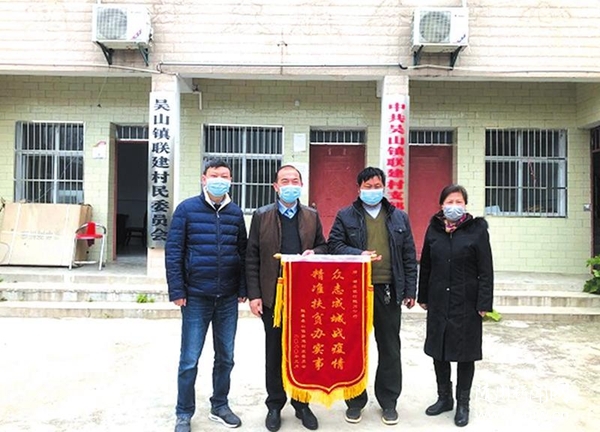 “感谢你们疫情期间对我们的支援,出人出力出资,帮我们顺利渡过难关。”近日,随县吴山镇联建村为湖北银行随州分行送上“众志成城战疫情,精准扶贫办实事”锦旗。(随州日报通讯员涂冉摄)