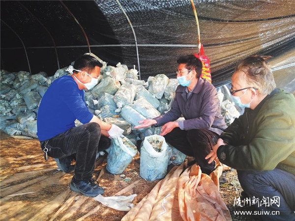 连日来,随县农业农村局、随县食用菌协会组织中华联合财产保险公司随县分公司为香菇产业保驾护航,对菇农进行自然灾害投保。图为农业执法人员了解菇农因新冠肺炎疫情受损失情况。(随州日报通讯员晓夏摄)