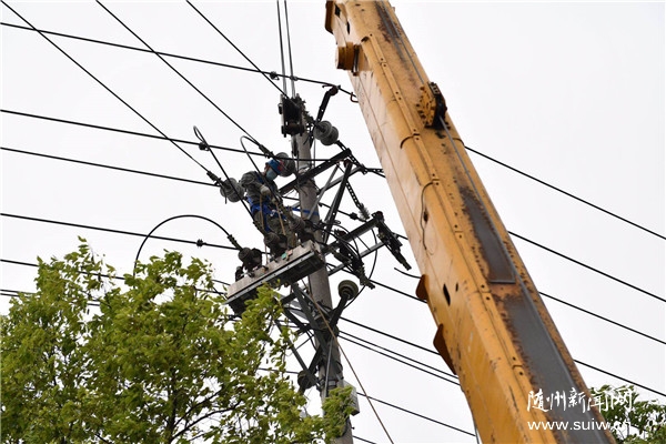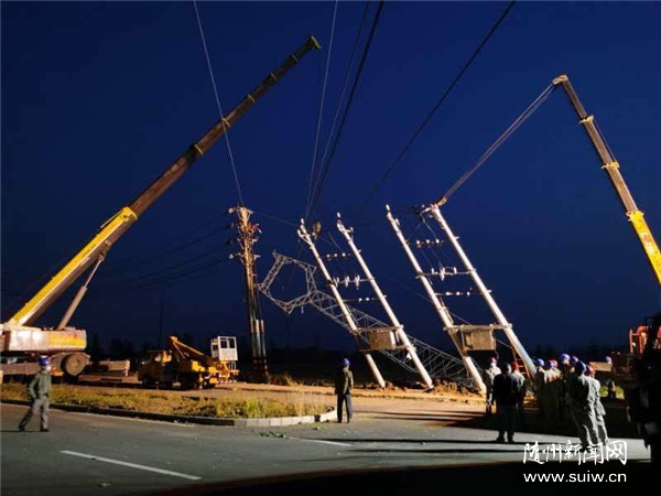 在受灾最严重的曾都区交通大道两水沟路段,13根电杆被龙卷风连排吹倒折断,6支抢修队伍120余人迅速集结到现场,轮班不间断作业,快速清理倒断杆和树障,利用吊车和应急照明,连夜施工立起电杆,次日便重建了一条崭新的线路。在裕民大道新春村路段,9级阵风导致110千伏烈两线3基输电铁塔损坏,供电公司及时调整电网运行方式,转移用电负荷,隔离受损区域,在不影响供电的同时争分夺秒开展抢修。