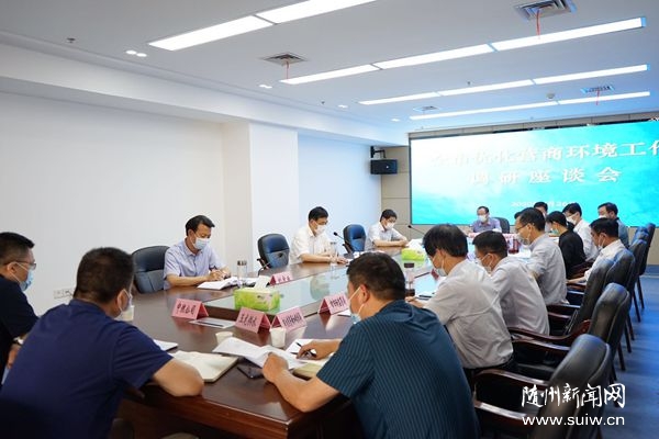 陈瑞峰先后前往湖北帝成环卫科技有限公司、黄鹤楼酒业搬迁改造项目和市政务服务中心办事大厅实地调研,听取企业的意见建议,了解“一网通办”、“一事联办”工作推进等方面情况。座谈会上,听取了有关部门和单位关于优化营商环境工作推进情况的汇报。