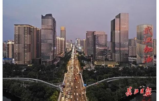 (图为周末的长江二桥上,车辆川流不息,武汉浴火重生,焕发出强劲的活力。记者苗剑 摄)