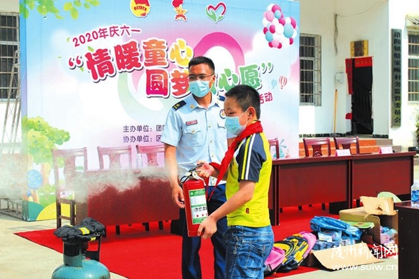6月1日,共青团曾都区委、区关工委、区民政局、区妇联等,在洛阳镇骆畈村开展“情暖童心·圆梦微心愿”活动。期间,区消防救援大队工作人员应邀开展消防安全知识讲座与现场演练,强化孩子们及家长的安全意识,树立科学的消防安全观。 (随州日报全媒记者陈巧玲通讯员李莉张莹莹摄)