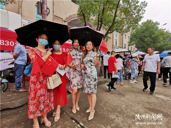 随州日报讯(全媒记者陈巧玲、实习生宋姗姗)7月7日,2020年高考正式拉开大幕。在考生为高考全力以赴的同时,场外家长和老师们用各种方式为考生应援加油。着旗袍、穿红衣、挥小红旗……小小“仪式感”为考生添信心。