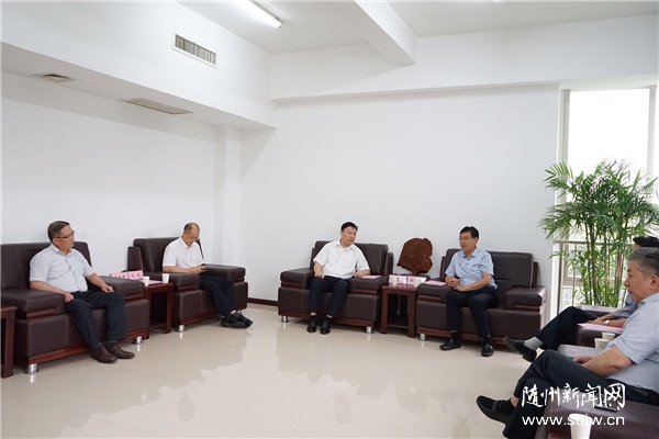 陈瑞峰对范秉衡一行的到来表示欢迎,并介绍了随州经济社会发展情况。他说,随州产业特色鲜明、区位优势明显、发展前景广阔。近年来,我市坚持以习近平新时代中国特色社会主义思想为指导,积极融入省委区域和产业发展布局,加快推进品质随州建设,打造“三城”、建设“四基地”,奋力推动高质量发展。当前,我市正积极抢抓对冲疫情影响的政策机遇、应急产业的发展机遇、“一主两翼”布局的战略机遇,加快推动经济社会疫后重振。推动产业转型升级、实现高质量发展,离不开网络信息技术的支撑,希望与中国移动在新基建、特别是产业高端化智能化发展上进一步深化合作,进一步把双方的合作意向细化、具体化、项目化,依托现代信息技术,推动随州的应急等特色产业提档升级,实现产业有品质的成长。 范秉衡对随州市委市政府长期以来对中国移动湖北分公司、随州分公司的支持和关心表示感谢,并介绍了湖北分公司基本发展情况、疫情防控情况和参与抗击疫情所做的工作。他表示,湖北分公司将进一步深化与随州的合作,积极支持参与随州新基建、工业互联网建设等,为随州市民提供更加便捷的信息服务,为随州经济社会发展作出新的更大的贡献。