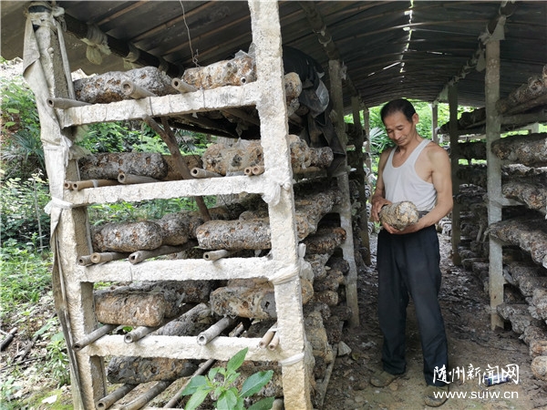 在一处田垄上,村里的贫困户杨自发正在查看他家栽种的药材七叶一枝花,苗圃旁边还有他自建的香菇种植大棚,架子上整齐地摆放着一排排菌棒。杨自发介绍:“那边房屋周围一片高大粗壮的杨树,都是我栽种的。今年我家种了几亩口粮田,院里还养殖了黑猪和10箱子蜜蜂……里里外外都得忙活。”