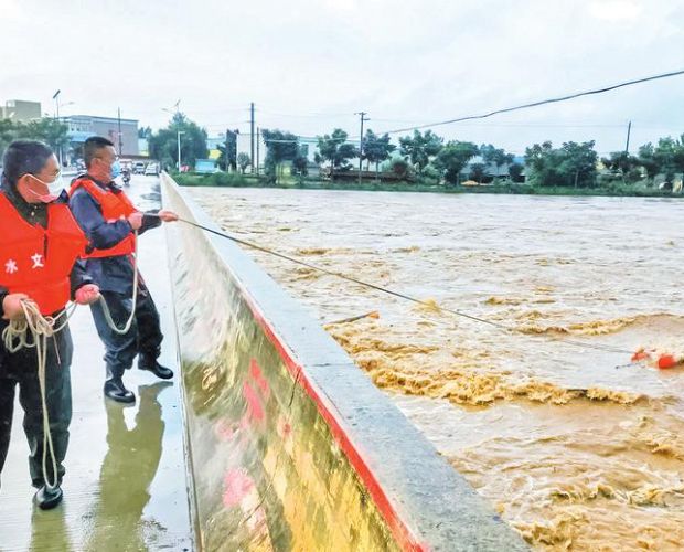 入梅以来,我市降雨量大增,随州水文局加大了外业测量频次,为预警预报洪水提供有效依据。图为随州水文局工作人员在均水河测量洪水流量。