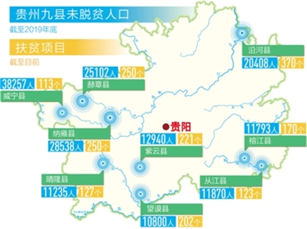 到去年底,贵州还有9个县未脱贫摘帽,主要位于西北部高寒山区、西南部石漠化片区和东南部深山区,资源禀赋差,脱贫难度大,是典型的贫中之贫、坚中之坚。