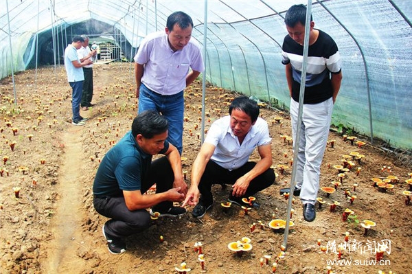 7月22日,随县食用菌协会以开展食用菌品质年为抓手,组织专家组进厂入棚检查食用菌生长情况。图为食用菌专家在随县厉山镇食用菌厂讲解灵芝种植怎样提质增效。 (随州日报通讯员许景闻、石守京摄)