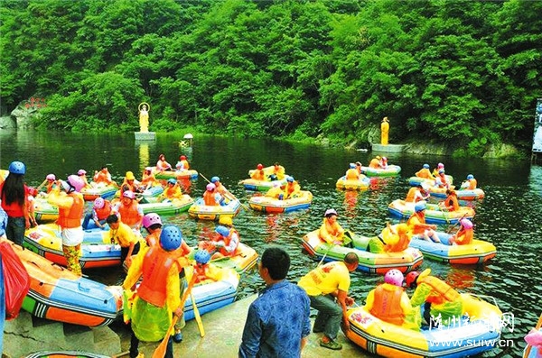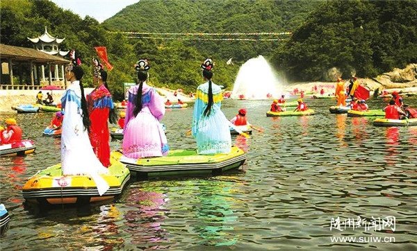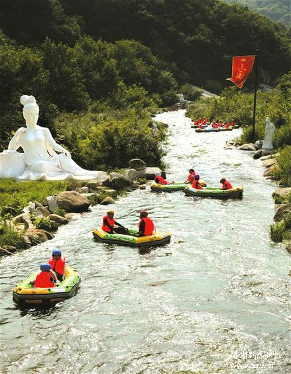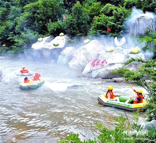 漂至天河湾南天门下,大量声光电雾效果和背景音乐使用,让游客漂流至此仿佛是神仙赴蟠桃盛会