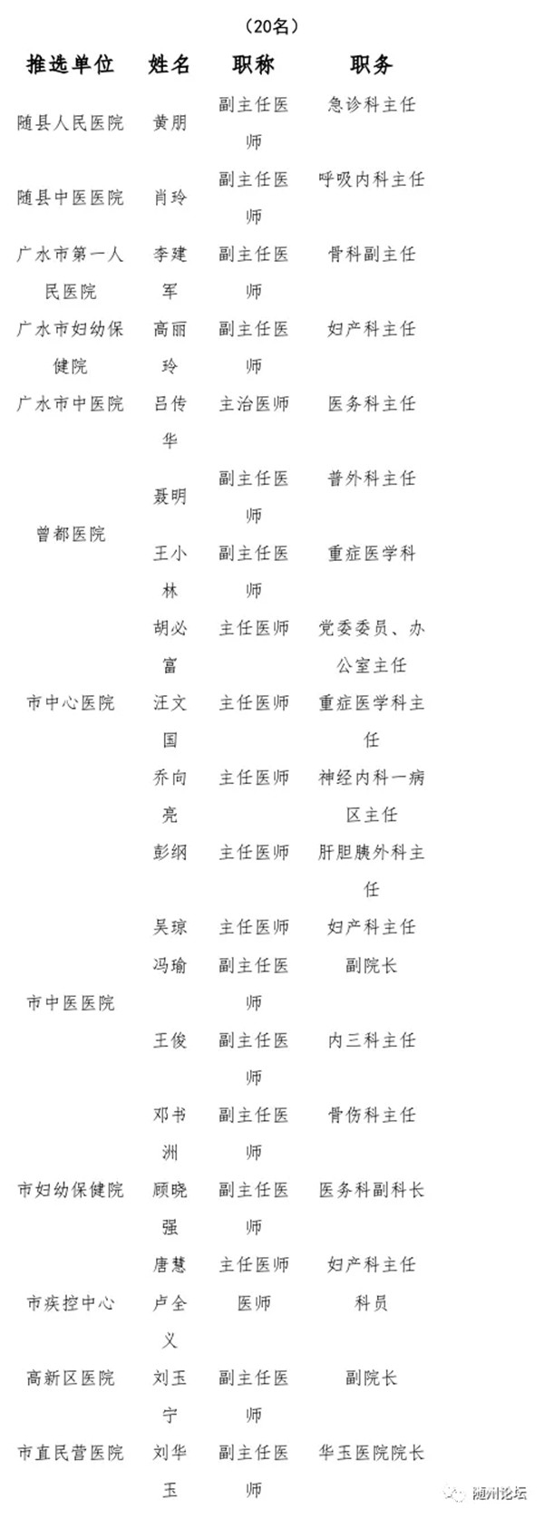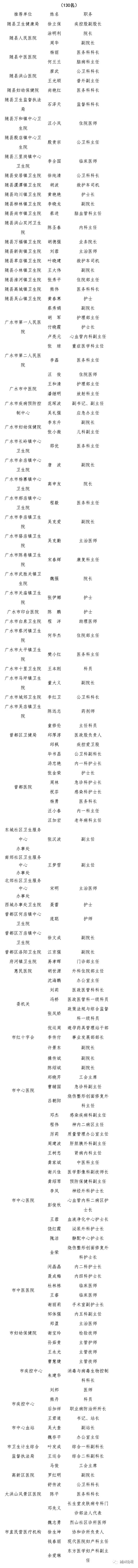 随州市卫生健康系统抗疫先进个人获奖名单