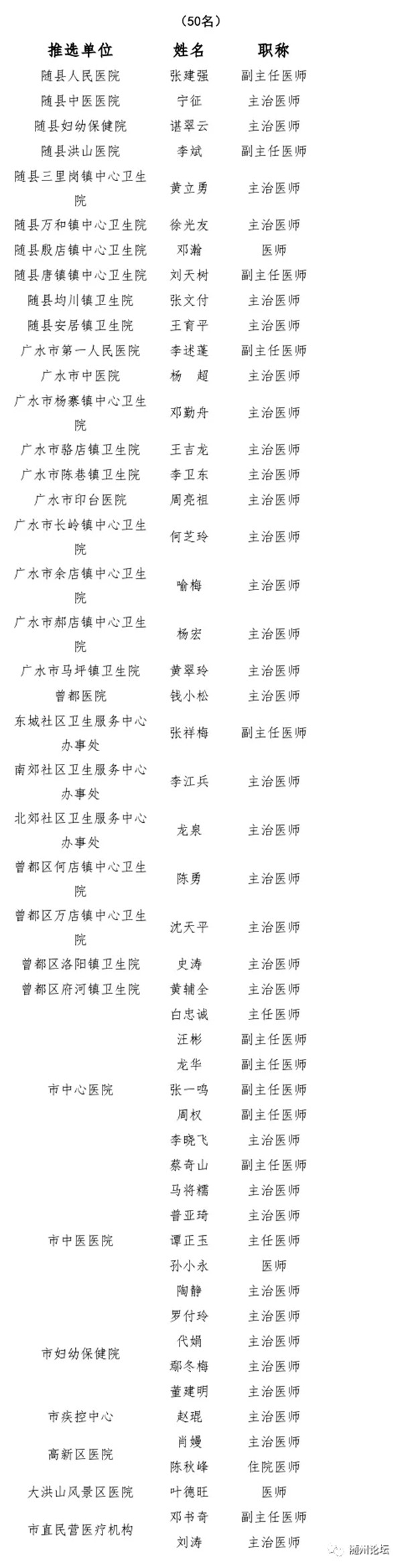 第三个中国医师节“随州好医生”获奖名单