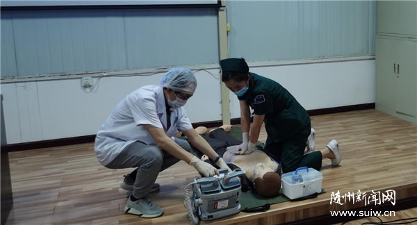 急诊科刘富森、王晶晶进行现场医护配合基础生命支持术演练。