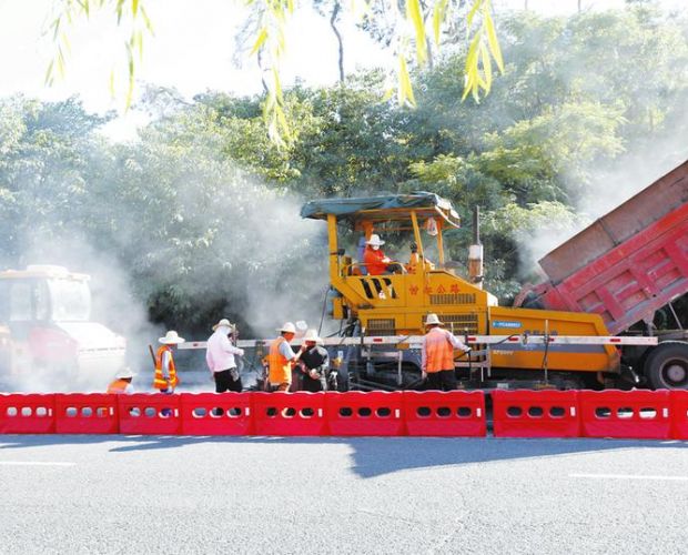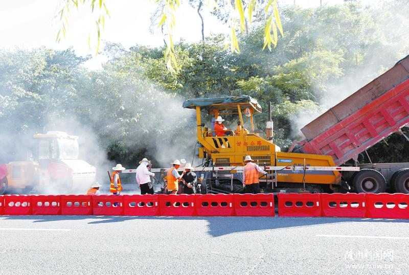 2020年是交通运输部五年一次“国评”之年。随州市公路部门着力提升公路路况和路容路貌水平,并抢抓有利天气,对辖区内公路破损路面进行修复作业,全力以赴备战“国评”。图为曾都区公路局对白云大道破损路面进行大修作业。(随州日报通讯员刘文生摄)