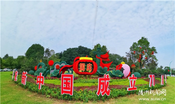 园林部门组织人员在公园、广场、主要路口处摆放了“祝福祖国”“欢度国庆”等花坛造型,增添城市绿化美化彩化效果,商铺、道路两侧都悬挂起了五星红旗和大红灯笼,以靓丽的城市景观营造喜庆的节日氛围。