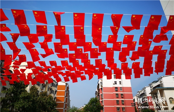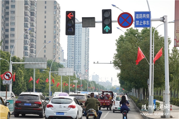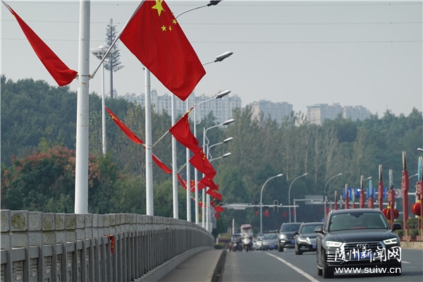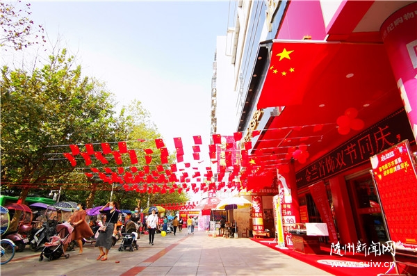 国庆、中秋“双节”同至,随州城区大街小巷张灯结彩,人们用鲜艳的国旗、火红的灯笼布置出一片喜庆的中国红,表达对祖国母亲的祝福。