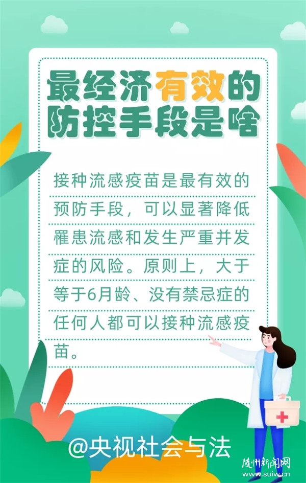接种流感疫苗是全球公认的防控流感的有效手段。其中,医务人员、儿童、老年人及慢性病患者等是流感疫苗接种重点人群,接种流感疫苗可以显著降低接种者罹患流感和发生严重并发症的风险。
