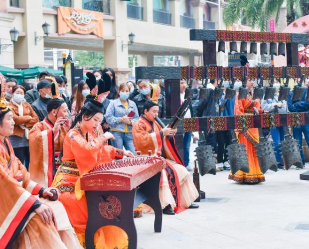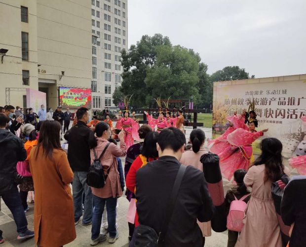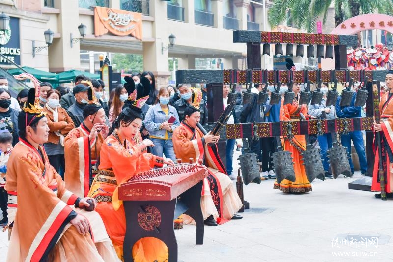 随州日报讯 (全媒记者 陈云)繁华闹市编钟敲响,人群身旁水袖飞扬。10月17日,我市组织赴汉开展“惠游湖北 乐动江城”编钟乐舞快闪巡演。古老神秘的编钟乐舞走进繁华闹市、市民身边,古典与现代的碰撞之美,让现场围观群众深深记住了随州,进一步提升了随州城市的知名度和美誉度。