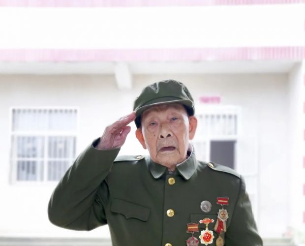 身着绿军装,虽拄着拐杖,走路颤颤巍巍,但握手时格外有力。这是抗美援朝老战士徐朝启给记者的第一印象。