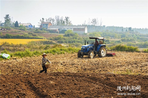 10月30日,随县新街镇墩子湾村杨国洲夫妇正在播种小麦。该镇今年计划播种6.5万亩小麦,目前已完成4.3万亩。进入10月下旬,农民抢抓有利季节,积极进行秋冬播生产,田间地头一派繁忙景象。(随州日报全媒记者李文军摄)