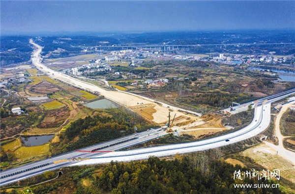 浪河至何店一级公路建设工程,起于编钟大道与麻竹高速公路交叉口的曾都区何店镇王家冲,对接汉十高速何店互通出口,建设里程7.29公里。该项目按照路基宽度36米双向6车道的标准建设,设计时速80公里每小时,总投资48856万元。图为正在进行下穿麻竹高速公路施工现场。(随州日报全媒记者李文军摄)