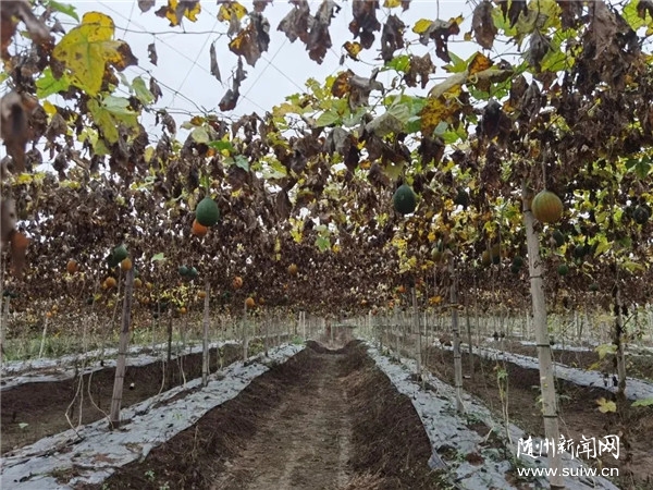 逢霜降,瓜蒌黄。近日,记者走进均川镇陶家楼村瓜蒌种植基地,只见成片的棚架下悬挂着灯笼一样的金黄瓜蒌。