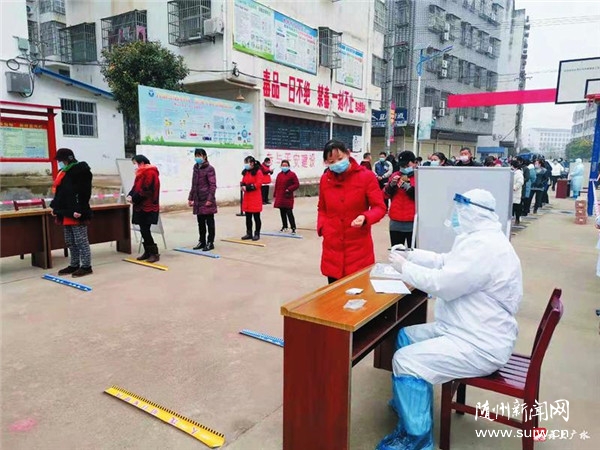 12月9日,广水市李店镇整合社区、卫生院、派出所等单位力量,联合开展新冠肺炎病毒全员核酸检测应急演练活动。图为实战演练现场。(随州日报通讯员程淇、陈乐摄)