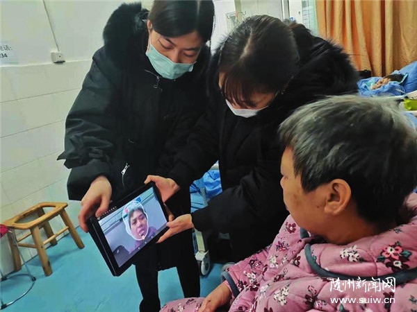 近期,市邮政公司认真贯彻国办发45号文件关于社保卡服务工作标准,高效落实老年人等特殊群体延伸服务工作。图为曾都分公司网点营业员到市中心医院为行动不便老人办理社保卡激活业务。 (随州日报通讯员张盼盼摄)