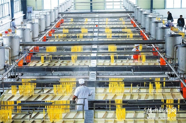 随州市康乐信农产品有限公司是位于随县安居镇的一家农产品出口企业,该公司2020年开始建设,目前1号、2号厂房已经开始运营生产,全部建成投产后将年产8000吨腐竹产品,年产值1.2亿元,成为华中地区最大的腐竹生产出口基地,成为拼多多、淘宝等电商腐竹产品重要供货基地。图为腐竹自动化生产线。 (随州日报全媒记者李文军摄)