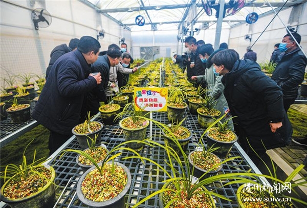 何店镇菁山兰业公司2020年一期投资4000万元建成15个高效规模性智能钢构大棚栽培名优蕙兰,当年实现营业额5000万元。